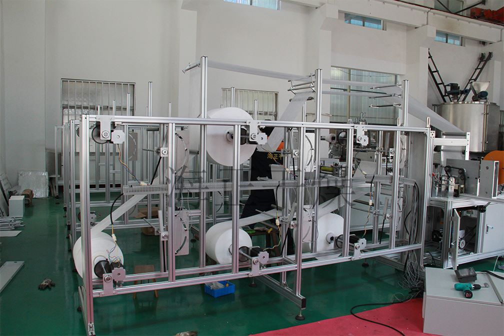 常州市海正藥化設(shè)備有限公司于4月中旬開始自主設(shè)計、制造KN95半自動/自動內(nèi)置式鼻梁條口罩機,口罩機每分鐘的打片速度為100-115片。第一批5臺口罩機已于近期調(diào)試成功,歡迎新老客戶前來考察訂購!